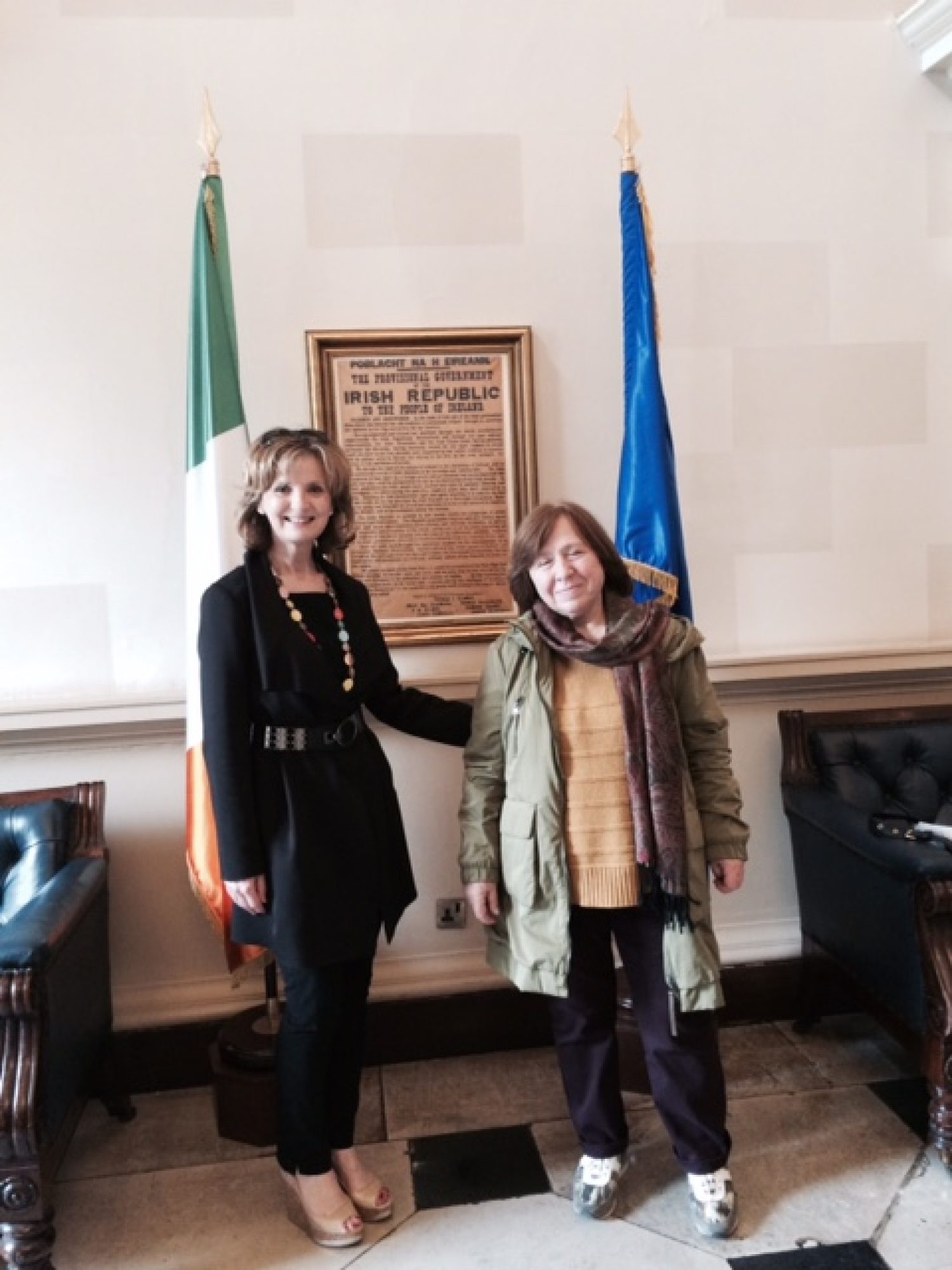 Svetlana Alexievich and our voluntary CEO and founder Adi Roche are long time friends and attended the event together as well as toured the Dáil together yesterday morning. Svetlana in her speech last night when asked for the definition of ‘freedom’ responded by saying that she had experienced it in our Dáil with the inclusivity of our citizens. She was amazed to see our Dáil full of young people of all ages, to see people with disabilities mingling among our politicians. She was also inspired by the stories of our history and she said it had a profound impact on her own understanding of true democracy.